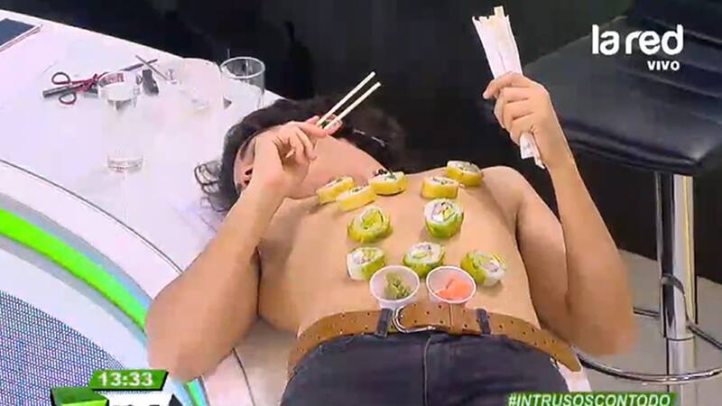 “Fui con una amiga. Y mi amiga era amiga de él, que se llama Sergio. Y me contó que lo habían llamado para ser el ‘hombre sushi’. Y me dijo ‘oye, me pagaron súper bien’. El trabaja en promociones. Es modelo. Estuvimos compartiendo con un grupo y me dijo ‘yo no tengo ningún problema, me puse el sushi’”, aseguró Nataly Chilet, quien defendió la práctica.
