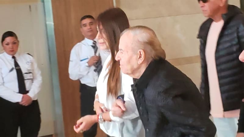 Un Carlos Menem de 88 años, que camina con ayuda de su hija Zuleminta -MIRE AQUI EL VIDEO-, y acompañado también por Carlos Nair, llegó poco antes del mediodía a la Clínica Las Condes. Allí estuvo 40 minutos junto a su hijo Máximo y su ex esposa Cecilia Bolocco.