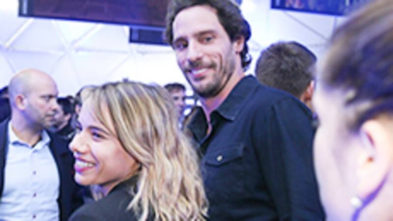 Más tarde el actor comenzó a hablar por teléfono. Salió hasta la puerta y volvió con su pareja, María gracia Omegna, con quien además protagonizó la teleserie Papá a la Deriva, en Mega.