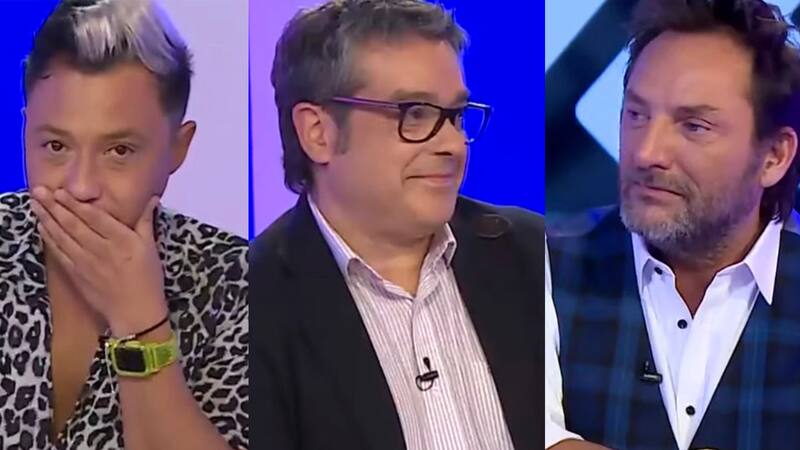 El periodista y el conductor se levantan de sus asientos, se abrazan y luego retoman sus puestos.