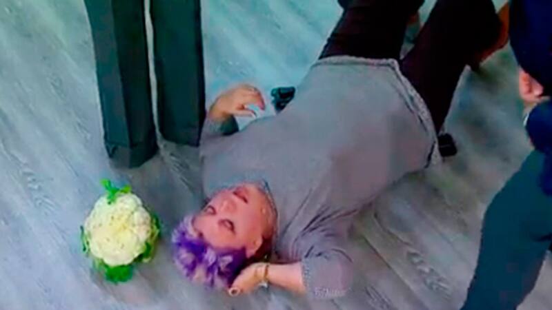 “¡Te dije weón!”, vociferó en el suelo, adolorida. “¿Estai bien?”, consultó Viñuela, asustado. Lucho Jara se acercó a auxiliarla. Pero no pudo evitar que la panelista también desatara su furia contra él.