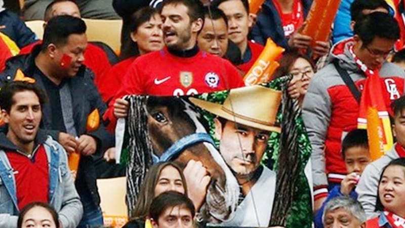 Ver hinchas chilenos apoyando a la Roja en la China Cup fue raro. Solo unos pocos fueron los privilegiados de estar en el estadio de Nanning para la final que ganó la Selección Chilena a Islandia este domingo –EL RATING Y RELATO DE FELIPE BIANCHI ACÁ–. Pero lo más llamativo fue el particular homenaje que uno de ellos le hizo a Felipe Camiroaga.