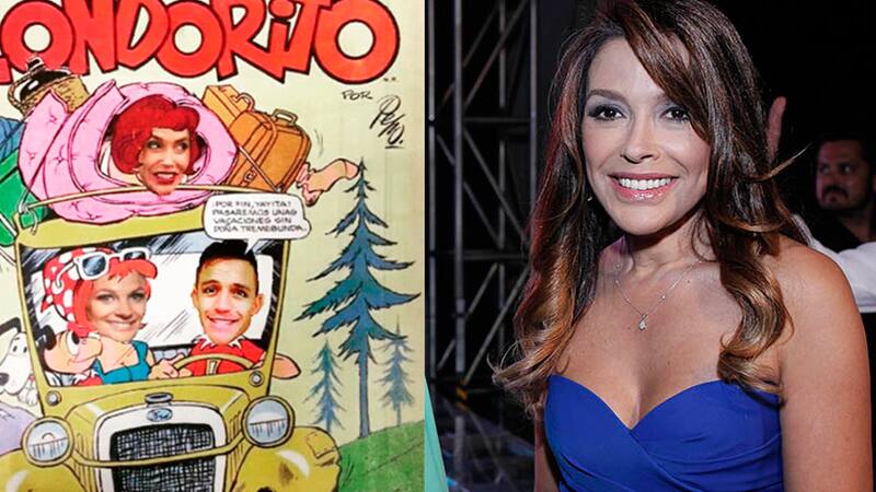 La protagonista de decenas de telenovelas, desde Angel Malo a El Camionero, publicó en la red social una portada de las clásica revista Condorito. En la caricatura el "pajarraco" y su eterna novia viajan y la suegra los acompaña escondida envuelta en una colchoneta, para vigilarlos.