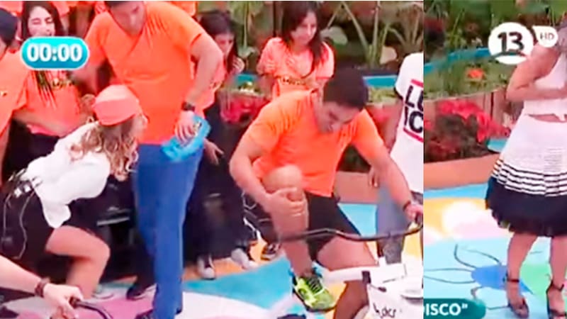 EL ACCIDENTE Bienvenidos desarrolló una competencia tipo gymkana. Para eso los panelistas y un grupo de escolares invitados al set se dividió en dos bandos. Era un ambiente festivo. Una de las pruebas fue la "bicidisco", revivida del programa El Ultimo Pasajero, que animó Martín Cárcamo en TVN.
