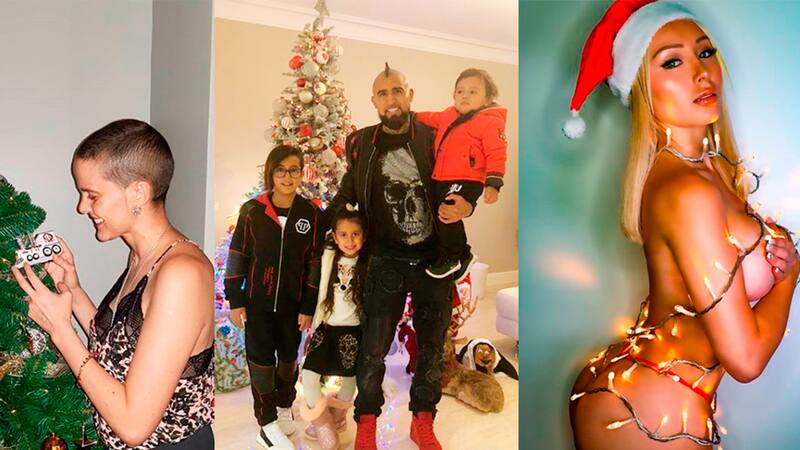 Desde la conejita Playboy en topless y gorro pascuero, hasta el crack Arturo Vidal posando con sus hijos, las fotos de Navidad de los famosos en Instagram.