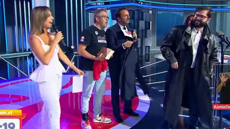 "Deja ver como me queda", le dijo el Presidente Gabriel Boric a Diana Bolocco anoche, sobre el escenario de la Teletón. Entonces Mauricio Pinilla le llevó al abrigo de cuero que Emmanuel donó para ser subastado a beneficio de la Teletón.