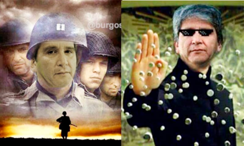 Muchos de ellos tuvieron referencias cinéfilas. Con Sutherland como Robocop, como Rambo, como protagonista de la película Rescatando al Soldado Ryan. Es el humor del chileno que siempre trata de mitigar situaciones terribles. Estos con algunos de los memes: