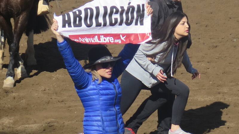 Eliana Albasetti lideró la funa a un rodeo realizado el fin de semana en la medialuna del parque Padre Hurtado. La ex Calle 7, junto a unos 30 activistas de la ONG Animal Libre, interrumpieron el evento para pedir la abolición de la actividad que consideran como “maltrato animal”. -VEA ESA NOTA ACÁ-