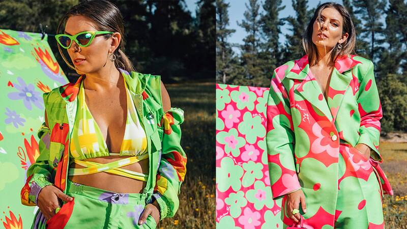 La influencer de estilo y moda realizó todo el proceso, desde crear el color y el estampado de las telas -que se fabricaron con la tecnología disponible en Novatex-, hasta diseñar los modelos, que fueron cortados y armados por su colaboradora, Constanza Rivera.
