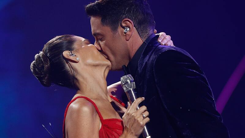 Pancho Saavedra le siguió el juego y, finalmente, se dieron el primer beso de estas tres noches del certamen, que partió con Maná. Fue con intensidad: