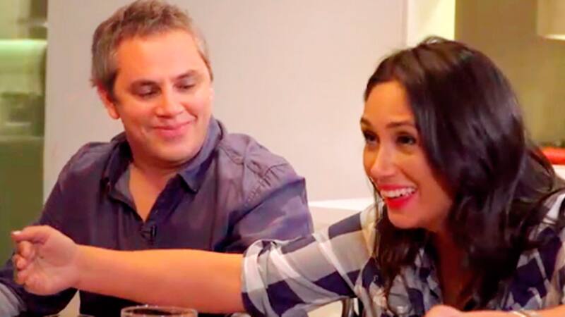 Denise Rosenthal y Sergio Freire se ríen el comentario con su que, que hizo Pamela.