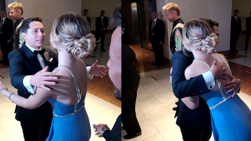 La candidata se acercó y lo saludó con buena onda. Pero Karol fue más cauto y frío, a pesar de las preguntas incisivas de Eyzaguirre. Le dio un abrazo y la saludó, pero evitó referirse a la rubia.
