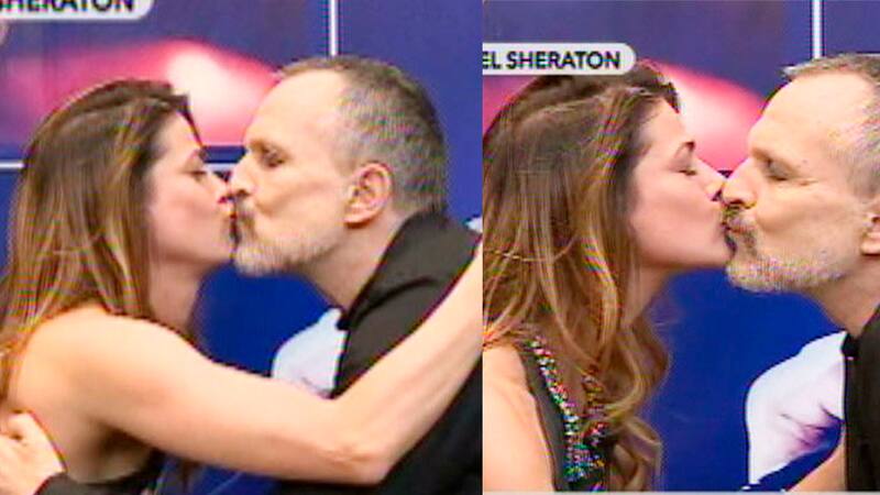 La animadora se acerca y nuevamente le da otro piquito a Bosé.
