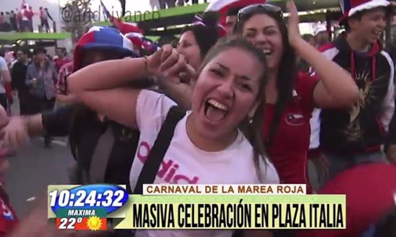 El mejor “ceacheí” del Mundial no ocurrió en Brasil. Desde Santiago, una exaltada hincha de La Roja realizó el grito más desesperado y cómico en lo que va de la Copa.