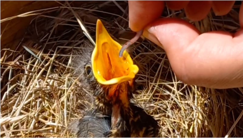 Así que, Phyllis se puso a buscarle lombrices “como loca”, las más pequeñas que encontró, para dárselas a la cría. Esos anélidos y otros bichitos eran todo lo que tenía a mano. El zorzalito ya estaba cambiando su plumón por las primeras plumas. “Se las tragaba súper bien”, destaca. “Fácilmente se entregó a recibir comida; a veces tienen miedo y no te la reciben”. Es más, ya después ella le silbaba como señal de que lo iba a alimentar y él abría el pico automáticamente.