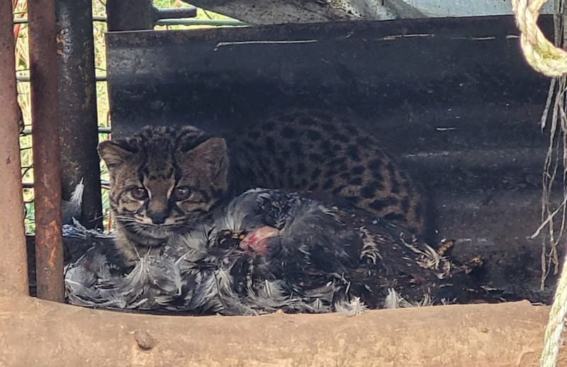 Aunque, en un principio sintió el “impacto” de que el pequeño felino se comiera a siete gallinas en solo una noche, después le vino una segunda etapa: “Reconocerlo, verlo de cerca, poder apreciarlo, tener esa oportunidad”, por lo que “me fui sensibilizando; e investigando más, me di cuenta del estado de peligro en que está”.