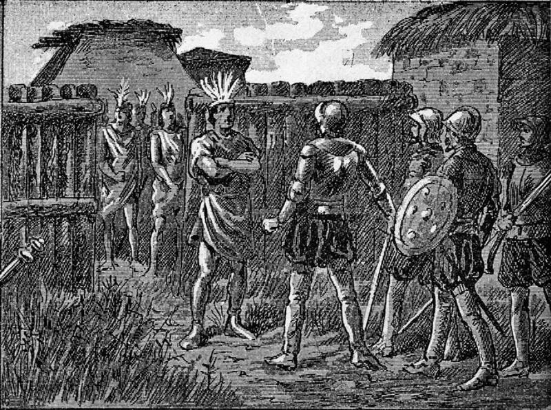 Así, hacia el verano de 1541, con un tiempo espléndido, la hueste arribó al fértil valle del Mapocho, por entonces bajo ocupación de los incas. Allí ocurrió el incidente en que organizó la asamblea con los jefes locales, en que les explicó a lo que venía.