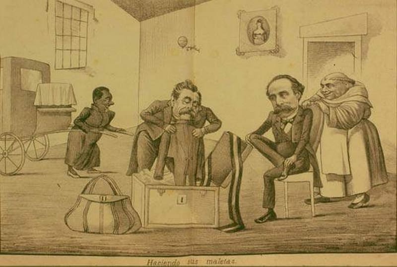 "Haciendo sus maletas": Caricatura de Balmaceda en El Padre Padilla[/caption]