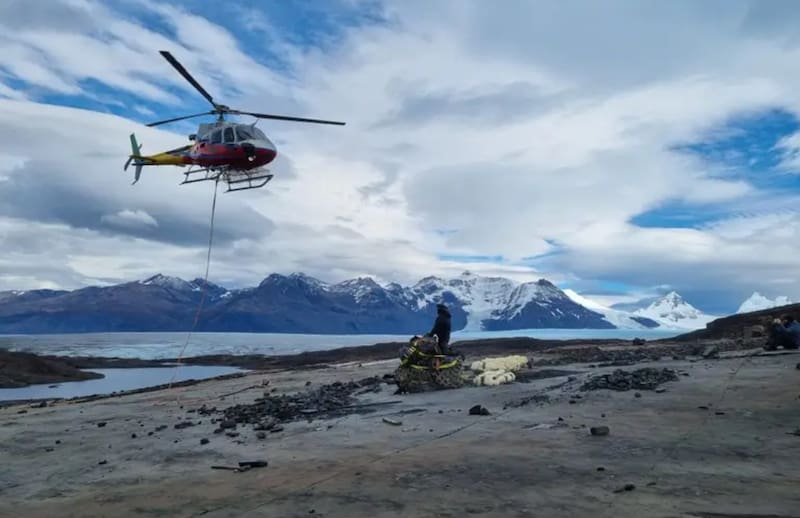 Judith, además, compró un hangar de unos 270 kilos para trabajar protegidos del viento, la lluvia y la nieve, que pueden hacer su aparición en cualquier momento del año. Todos los días subían comida y combustible desde el campamento base, al que llamaron “Hawái” —por el verdor, los ríos y los frutos rojos que lo rodeaban—, hasta donde se hallaban los excavadores, el chileno Héctor Ortiz y el argentino Jonatan Kuluza, que habían montado su carpa junto al glaciar, el cual dejó los fósiles al descubierto por ahí por el 1936.