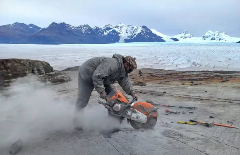 Mientras, dice, hay que protegerlos donde se encuentran, lo que implica ponerles consolidante encima, un pegamento, para resguardarlos de la erosión del viento, la lluvia y la nieve. Además, cuando el glaciar cubría todo ese lugar, fracturaba la roca, fósiles incluidos. “Entonces con el cambio de temperatura entre el día y la noche, la roca se contrae y se dilata, y van rompiendo la roca en pequeños fragmentos que son barridos por el viento”. Aquel es un proceso que ocurre lentamente con los años, pero que, a la larga, “es terrible”, dice.