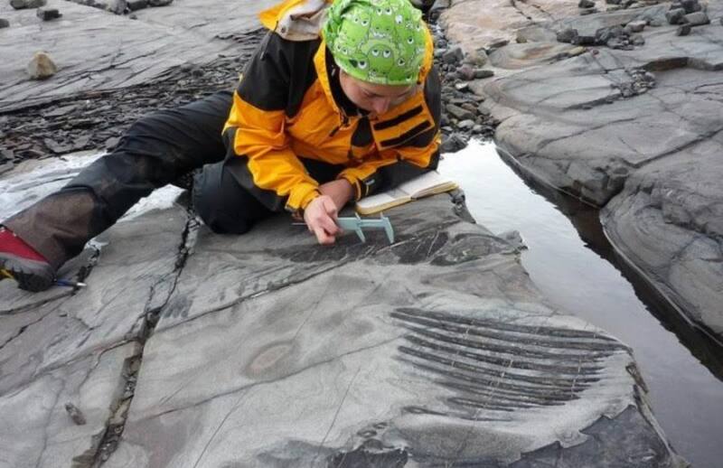 En total, eran tres personas caminando por los estratos que han quedado al descubierto con el derretimiento del glaciar. Avanzaban sobre un duro suelo, donde durante millones de años atrás se depositaron los restos de animales marinos y, en un largo periodo, esa “materia orgánica fue reemplazada en un proceso físico y químico”, hasta convertirse en “roca compactada”. Después vinieron glaciaciones que la cubrieron y, ahora con el calentamiento global, esas masas de hielo se retraen, dejando al descubierto los fósiles. La historia de la Tierra no se detiene.