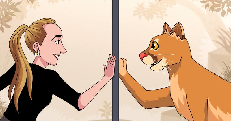 Ella se acerca a la jaula y apoya su mano derecha en la reja; luego, la izquierda. Desde el otro lado, “Maqui” hace lo mismo, las pisa con sus patas delanteras. Y mientras ella las pone más arriba, como si escalara, él va junto a Kendra, poniendo sus palmas sobre las de ella. Luego ella corre de un costado al otro y el puma, cual reflejo en un espejo, avanza a su lado.