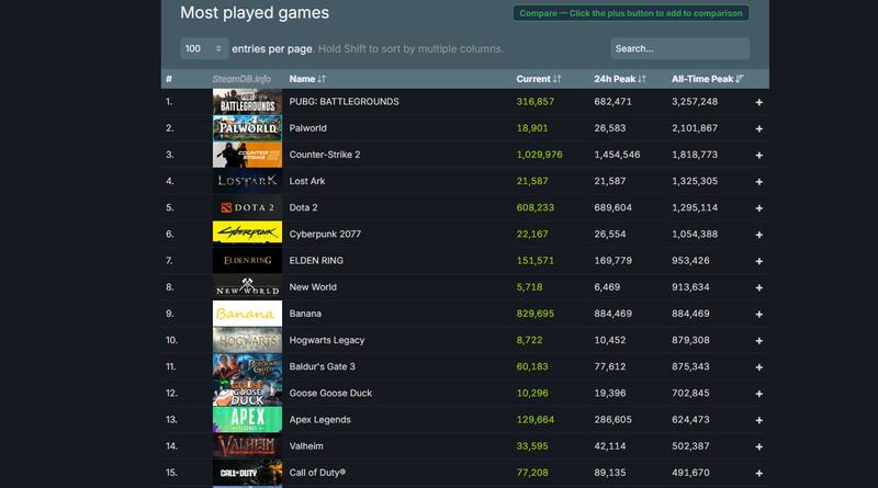 El juego se ha convertido en todo un éxito viral al nivel que ha superado a títulos como Hogwarts Legacy y Baldur’s Gate 3 en el listado de los más jugados de Steam, ubicándose en la novena posición.