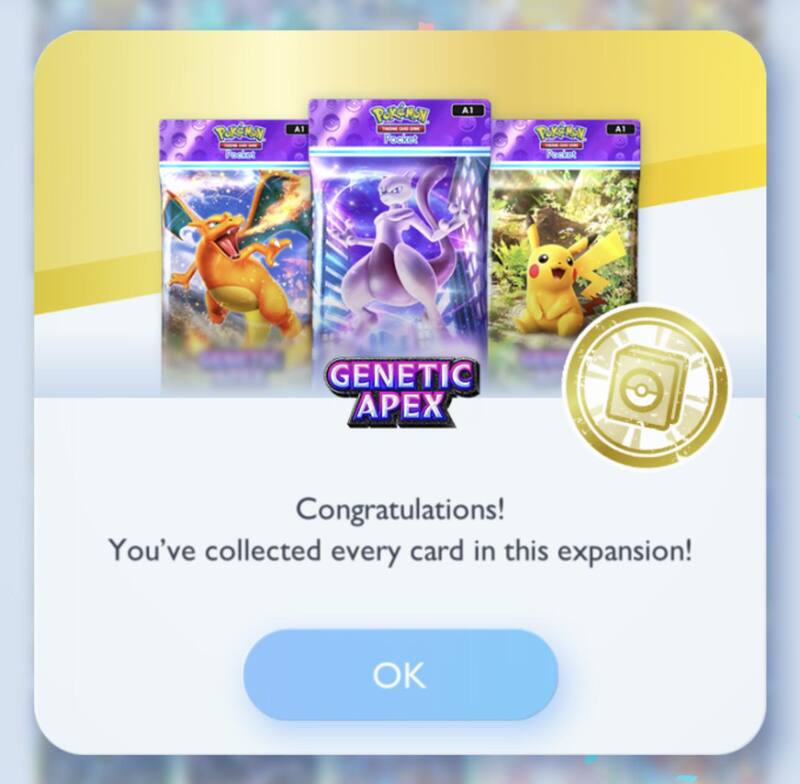 Pareciera ser entonces que la única forma de asegurarse de completar la colección actual del juego es invirtiendo dinero real en el título. En total, la edición Genetic Apex posee 286 cartas: 226 en formato básico y 60 variaciones raras que contienen solo mejoras estéticas, pero funcionan igual que sus contrapartes básicas.
