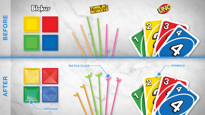 La compañía Mattel se comprometió a hacer que el 80% de su catálogo de juegos, incluyendo títulos tan populares como Uno, sea accesible para personas con deficiencia en la visión del color para finales de este año. Posteriormente, promete alcanzar al 90% durante 2025.