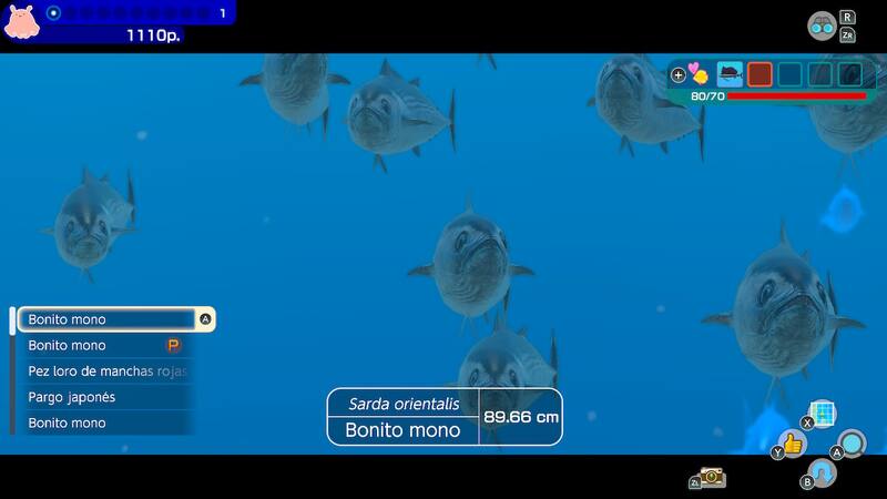 Ese párrafo no solo resume la idea del juego, sino que realmente todo lo que haces en él. Literalmente lo único que tienes que hacer es avanzar por el agua, ver un pez o un cardumen y presionar el botón de escaneo de manera incesante. Si es una especie nueva te dará su descripción y si es una antigua te dará luz, la principal manera de ganar experiencia que sirve principalmente para desbloquear cosméticos.