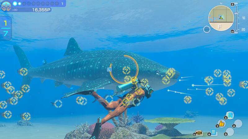 ¿Recuerdas la primera vez que nadaste en Mario 64, te acercaste a los pequeños peces del decorado y estos se movían? Nada de eso está acá. Puedes acercarte a un cardumen de merluzas, a un delfín, un tiburón o una ballena y no va a pasar absolutamente nada, como si fueras un fantasma. Tampoco hay relación entre ellos, por ejemplo, rémoras nadando junto a tiburones, y para que decir con el personaje. Toda la fauna del juego está ahí para ser escaneada, pero nadie te ataca, nadie se te acerca, nadie hace nada que ponga en peligro ni que requiera alguna estrategia.
