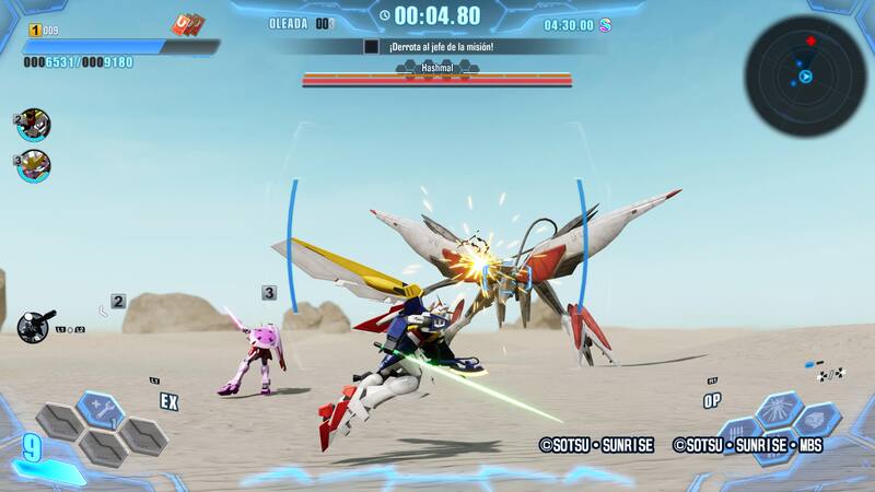 Pero vamos a la jugabilidad, hay que mencionar que esta en un comienzo me resultó un tanto complicada de asimilar y es que las cuatro armas que podemos equipar en nuestro Gunpla -dos de rango y dos cuerpo a cuerpo, sin contar las extras que nos den las piezas- más los controles de movimiento, que no resultan de lo más intuitivo del mundo, lo vuelven un tanto difícil de dominar. Es así como en los primeros minutos sentía que me movía a trancazos. Sin embargo, tras unos minutos de juego, es que le vas agarrando la mano al juego y ya puedes centrarte en realizar atractivos combos o dominar a la perfección los cambios entre rango, cuerpo a cuerpo y especiales.