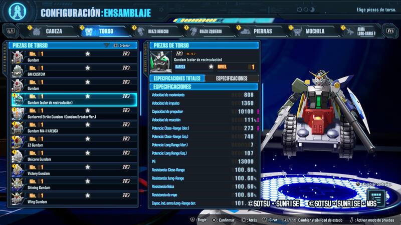 Equipar las piezas no sólo no sólo tiene un aspecto cosmético, ya que también nos permite acceder a diferentes habilidades pudiendo de esta forma hacer una enorme cantidad de combinaciones hasta crear nuestro Gunpla definitivo. Pero esto no es todo, ya que con el fin de hacer la personalización más profunda, al avanzar en la historia, eventualmente se desbloquea la capacidad de sintetizar partes, pudiendo de esta forma aumentar la potencia de las diferentes partes con el fin de mejorar tu Gunpla, y darle un toque más de profundidad al gameplay.