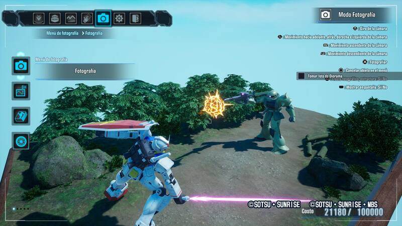 Como ya mencionábamos el verdadero foco de este juego es el armar tu propio Gunpla, para lo cual cuentas con un menú bastante fácil e intuitivo donde puedes equipar las diferentes piezas con el fin de hacer tu propia creación. También junto con esto encontramos una atractiva opción que todos los fanáticos de los modelos a escala disfrutarán, y es que el juego te permite crear tus propios dioramas utilizando los diferentes Gundam que has adquirido, poses, efectos y escenarios. Es así como puedes recrear recordadas escenas de tu anime favorito o crear las tuyas propias en un atractivo modo.