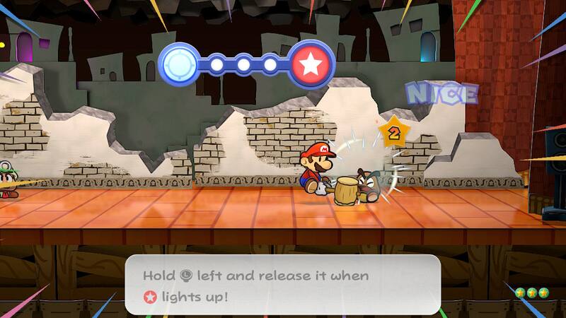 Cada ataque posee un microjuego basado en timing, desde el más sencillo que es presionar el botón en el momento correcto, hasta mover el stick y soltarlo con ritmo. Además, junto a Mario podremos tener un acompañante, que tendrá sus propias habilidades y poderes, con sus microjuegos de ataque distintos.