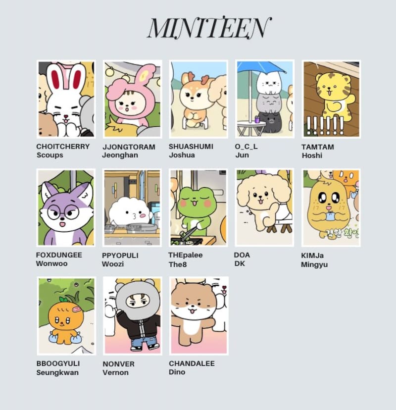 “MINITEEN” es el nombre colectivo de los tiernos personajes que representan a cada uno de los integrantes de SEVENTEEN.