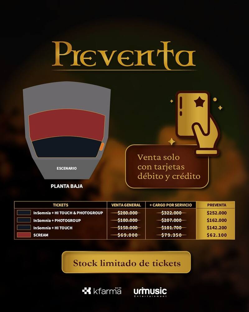 Según información oficial de la productora Urimusic Entertainment, la preventa se realizará de manera presencial este jueves 6 de junio a las 11:00 hrs en la tienda KFarma ubicada en Río de Janeiro 283, en la comuna de Recoleta.