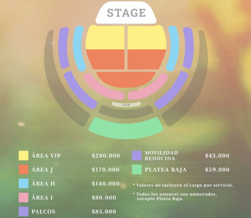 Cabe señalar que las entradas para platea baja no incluyen ningún beneficio de fan.