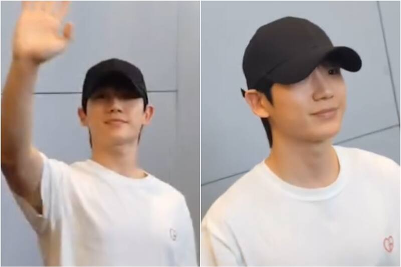 Al encontrarse con las fanáticas, Jung Hae In aprovechó el momento para recibir algunos regalos que le habían preparado y saludar con una cálida sonrisa a cada una de las personas que lo esperaron durante horas.