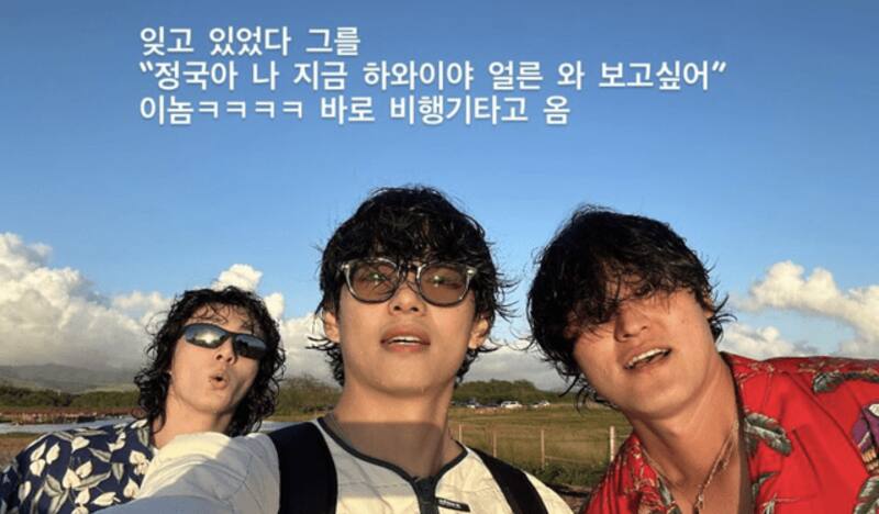 Mediante Instagram Taehyung explicó por qué Jungkook había a viajado a Hawái, sin embargo, el look del maknae de BTS llamó la atención.