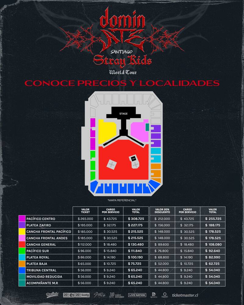 Los valores para ver a Stray Kids en el Estadio Bicentenario La Florida, sin considerar los descuentos, son los siguientes: