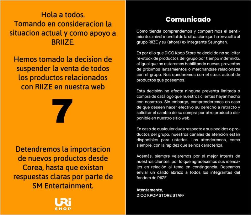 Mediante redes sociales, el pasado miércoles 16 de octubre, fueron varias las tiendas de K-Pop chilenas que comunicaron a sus clientes que se sumaban al boycott contra SM Entertainment y RIIZE.