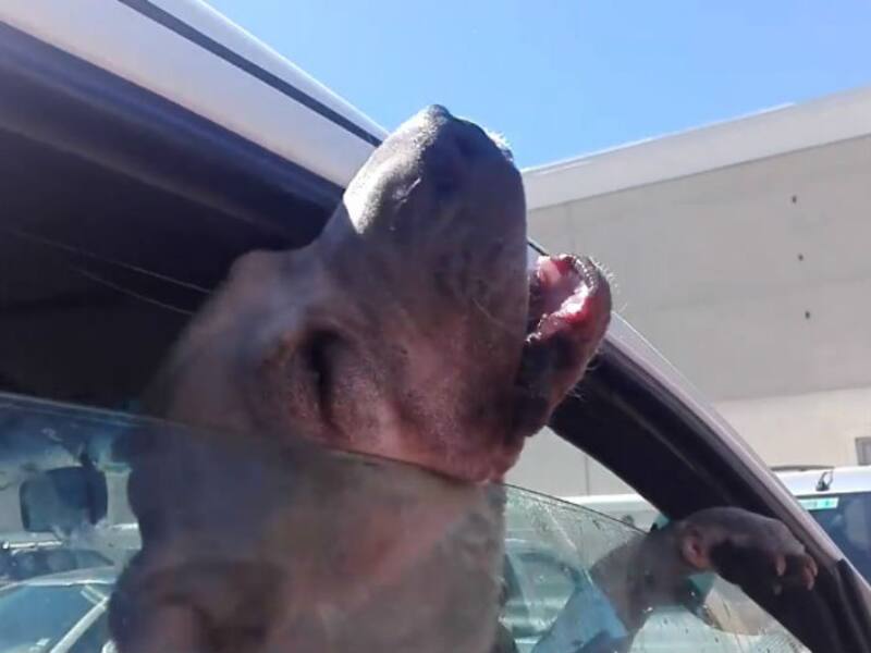Un perro fue encerrado al interior de un vehículo en plena ola de calor. Transeúntes notaron esta situación y fueron al rescate del can, sacándolo del auto e hidratandolo con agua.