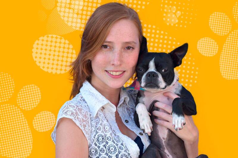 Isabel (26) y Perry (2): Estudió Comunicación Audiovisual, pero su pasión por los animales la llevó a volcar su conocimiento hacia los perros y dedicarse a la fotografía de mascotas y especializarse en el adiestramiento de perros. Hace un par de años Isabel se fue a vivir sola a un departamento y no soportó estar sin una mascota, por lo que adoptó a Perry, una Boston terrier que se transformó en su compañera de vida.
