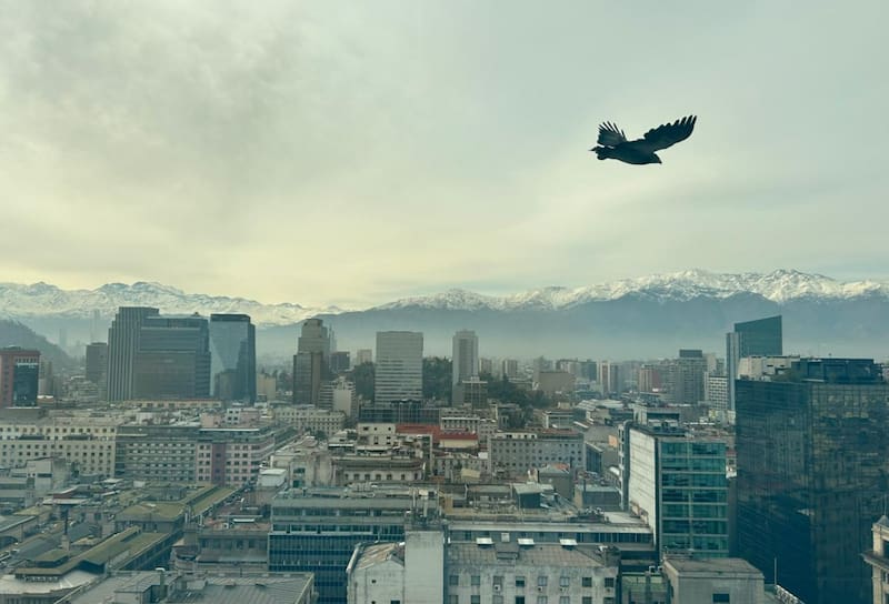 Desde el piso 20 de un edificio en las calles Moneda con Bandera, pleno centro de Santiago, “se veía perfecto” un águila mora (Geranoaetus melanoleucus) en vuelo, asegura Karin Ceballos, quien se desempeña de secretaria en un banco de la capital.