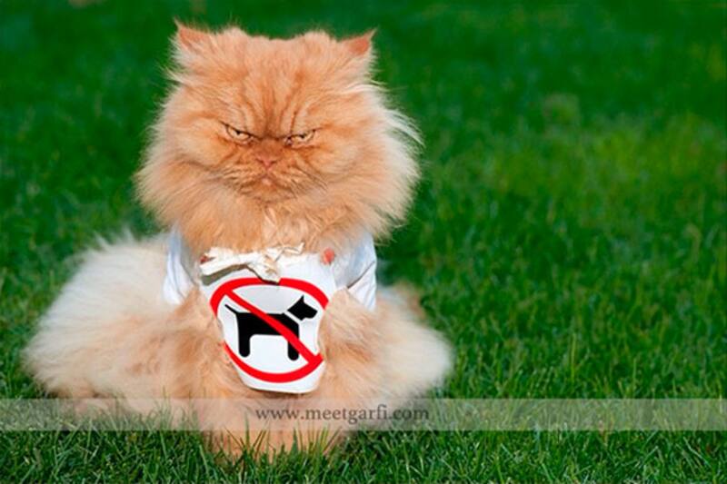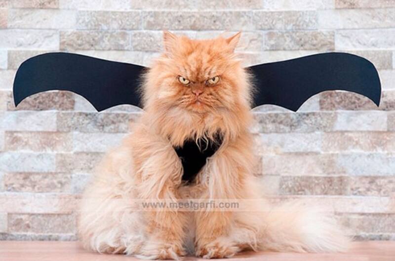 Si fuera sólo por su cara, probablemente pensaríamos que Garfi es huraño y distante, pero la verdad es muy distinta, porque pese a que es súper conocido por su rostro de pocos amigos en realidad es súper cariñoso y hasta se presta para que lo disfracen.