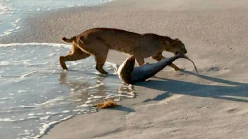 Estaba en Vero Beach cuando se percató que un gato montés estaba en la orilla del mar y sostenía algo en su hocico.