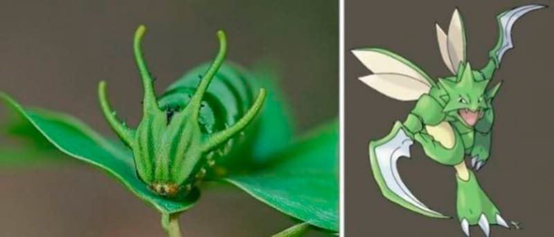 Ambos comparten morfología, anatomía, color y estilo: inclusive la cara de alertagado que tiene el Pokemon hasta remite al paso cansino que el insecto real tiene a la hora de moverse con sigilo.