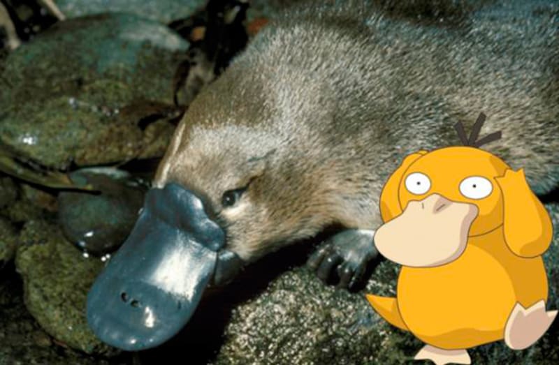 Sin dudas, el ornitorrinco es uno de los animales más asombrosos del planeta, más que nada porque parece haber nacido producto de una noche de sexo, amor y lujuria entre un pato y un castor. Pero además tiene un equivalente en el mundo Pokemon: Psyduck tiene su misma morfología, pero el de fantasía además tiene poderes psíquicos.