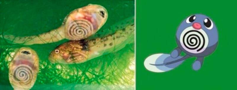 El espiral en la guata y su habitat en el agua asemejan a este animal que puede encontrarse en cualquier estanque y el pokemon con los ojos más tiernos.